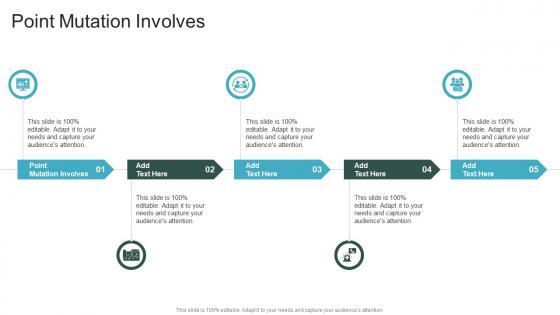 Introducing our well designed Point Mutation Involves In Powerpoint And Google Slides Cpb. This PowerPoint design presents information on topics like Point Mutation Involves. As it is predesigned it helps boost your confidence level. It also makes you a better presenter because of its high quality content and graphics. This PPT layout can be downloaded and used in different formats like PDF, PNG, and JPG. Not only this, it is available in both Standard Screen and Widescreen aspect ratios for your convenience. Therefore, click on the download button now to persuade and impress your audience. Our Point Mutation Involves In Powerpoint And Google Slides Cpb are topically designed to provide an attractive backdrop to any subject. Use them to look like a presentation pro.