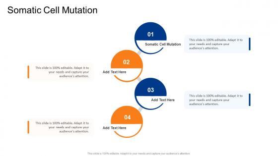 Introducing our well designed Somatic Cell Mutation In Powerpoint And Google Slides Cpb. This PowerPoint design presents information on topics like Somatic Cell Mutation. As it is predesigned it helps boost your confidence level. It also makes you a better presenter because of its high quality content and graphics. This PPT layout can be downloaded and used in different formats like PDF, PNG, and JPG. Not only this, it is available in both Standard Screen and Widescreen aspect ratios for your convenience. Therefore, click on the download button now to persuade and impress your audience. Our Somatic Cell Mutation In Powerpoint And Google Slides Cpb are topically designed to provide an attractive backdrop to any subject. Use them to look like a presentation pro.