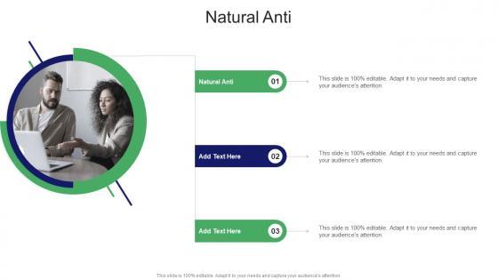 Presenting our innovatively designed set of slides titled Natural Anti In Powerpoint And Google Slides Cpb. This completely editable PowerPoint graphic exhibits Natural Anti that will help you convey the message impactfully. It can be accessed with Google Slides and is available in both standard screen and widescreen aspect ratios. Apart from this, you can download this well-structured PowerPoint template design in different formats like PDF, JPG, and PNG. So, click the download button now to gain full access to this PPT design. Our Natural Anti In Powerpoint And Google Slides Cpb are topically designed to provide an attractive backdrop to any subject. Use them to look like a presentation pro.