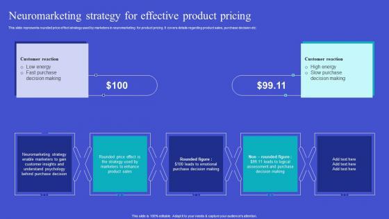 This slide represents rounded price effect strategy used by marketers in neuromarketing for product pricing. It covers details regarding product sales, purchase decision etc. Here you can discover an assortment of the finest PowerPoint and Google Slides templates. With these templates, you can create presentations for a variety of purposes while simultaneously providing your audience with an eye-catching visual experience. Download Neuromarketing Strategy For Effective Product Pricing Driven Digital Marketing Mockup Pdf to deliver an impeccable presentation. These templates will make your job of preparing presentations much quicker, yet still, maintain a high level of quality. Slidegeeks has experienced researchers who prepare these templates and write high-quality content for you. Later on, you can personalize the content by editing the Neuromarketing Strategy For Effective Product Pricing Driven Digital Marketing Mockup Pdf. This slide represents rounded price effect strategy used by marketers in neuromarketing for product pricing. It covers details regarding product sales, purchase decision etc.