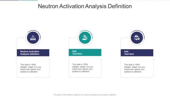 Introducing our well designed Neutron Activation Analysis Definition In Powerpoint And Google Slides Cpb. This PowerPoint design presents information on topics like Neutron Activation Analysis Definition. As it is predesigned it helps boost your confidence level. It also makes you a better presenter because of its high quality content and graphics. This PPT layout can be downloaded and used in different formats like PDF, PNG, and JPG. Not only this, it is available in both Standard Screen and Widescreen aspect ratios for your convenience. Therefore, click on the download button now to persuade and impress your audience. Our Neutron Activation Analysis Definition In Powerpoint And Google Slides Cpb are topically designed to provide an attractive backdrop to any subject. Use them to look like a presentation pro.
