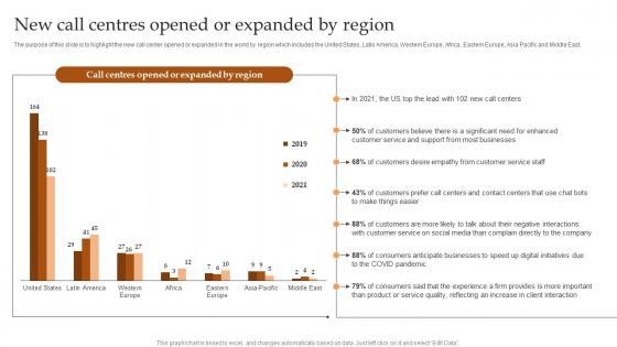 The purpose of this slide is to highlight the new call center opened or expanded in the world by region which includes the United States, Latin America, Western Europe, Africa, Eastern Europe, Asia Pacific and Middle East. Take your projects to the next level with our ultimate collection of New Call Centres Opened Or Expanded By Region IT And Tech Support Business Portrait Pdf Slidegeeks has designed a range of layouts that are perfect for representing task or activity duration, keeping track of all your deadlines at a glance. Tailor these designs to your exact needs and give them a truly corporate look with your own brand colors they well make your projects stand out from the rest. The purpose of this slide is to highlight the new call center opened or expanded in the world by region which includes the United States, Latin America, Western Europe, Africa, Eastern Europe, Asia Pacific and Middle East.