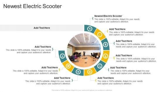 Introducing our well designed Newest Electric Scooter In Powerpoint And Google Slides Cpb. This PowerPoint design presents information on topics like Newest Electric Scooter. As it is predesigned it helps boost your confidence level. It also makes you a better presenter because of its high quality content and graphics. This PPT layout can be downloaded and used in different formats like PDF, PNG, and JPG. Not only this, it is available in both Standard Screen and Widescreen aspect ratios for your convenience. Therefore, click on the download button now to persuade and impress your audience. Our Newest Electric Scooter In Powerpoint And Google Slides Cpb are topically designed to provide an attractive backdrop to any subject. Use them to look like a presentation pro.