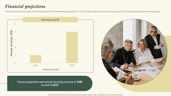 This slide covers financial projection of cloud monitoring platform for investor funding elevator pitch deck. It involves details such as project recurring revenue based on historical data and investing in technology updates. Slidegeeks is here to make your presentations a breeze with Financial Projections Nubity Capital Funding Pitch Deck Microsoft Pdf With our easy-to-use and customizable templates, you can focus on delivering your ideas rather than worrying about formatting. With a variety of designs to choose from, you are sure to find one that suits your needs. And with animations and unique photos, illustrations, and fonts, you can make your presentation pop. So whether you are giving a sales pitch or presenting to the board, make sure to check out Slidegeeks first. This slide covers financial projection of cloud monitoring platform for investor funding elevator pitch deck. It involves details such as project recurring revenue based on historical data and investing in technology updates.