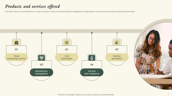 This slide covers key services offered by company. It involves services such as infrastructure management, cost optimization, cloud security and compliance and DevOps automation. Coming up with a presentation necessitates that the majority of the effort goes into the content and the message you intend to convey. The visuals of a PowerPoint presentation can only be effective if it supplements and supports the story that is being told. Keeping this in mind our experts created Products And Services Offered Nubity Capital Funding Pitch Deck Guidelines Pdf to reduce the time that goes into designing the presentation. This way, you can concentrate on the message while our designers take care of providing you with the right template for the situation. This slide covers key services offered by company. It involves services such as infrastructure management, cost optimization, cloud security and compliance and DevOps automation.