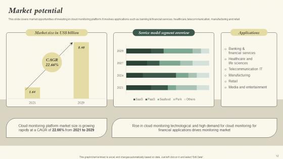 This slide covers market opportunities of investing in cloud monitoring platform. It involves applications such as banking and financial services, healthcare, telecommunication, manufacturing and retail. Are you in need of a template that can accommodate all of your creative concepts This one is crafted professionally and can be altered to fit any style. Use it with Google Slides or PowerPoint. Include striking photographs, symbols, depictions, and other visuals. Fill, move around, or remove text boxes as desired. Test out color palettes and font mixtures. Edit and save your work, or work with colleagues. Download Market Potential Nubity Capital Funding Pitch Deck Clipart Pdf and observe how to make your presentation outstanding. Give an impeccable presentation to your group and make your presentation unforgettable. This slide covers market opportunities of investing in cloud monitoring platform. It involves applications such as banking and financial services, healthcare, telecommunication, manufacturing and retail.