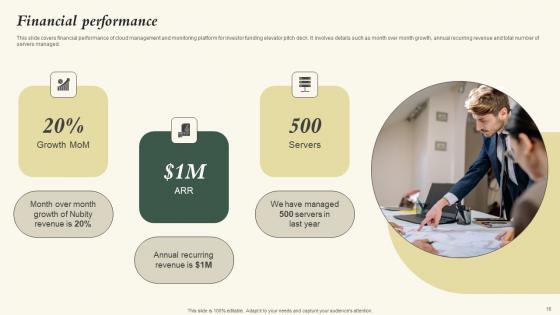 This slide covers financial performance of cloud management and monitoring platform for investor funding elevator pitch deck. It involves details such as month over month growth, annual recurring revenue and total number of servers managed. Present like a pro with Financial Performance Nubity Capital Funding Pitch Deck Portrait Pdf Create beautiful presentations together with your team, using our easy-to-use presentation slides. Share your ideas in real-time and make changes on the fly by downloading our templates. So whether you are in the office, on the go, or in a remote location, you can stay in sync with your team and present your ideas with confidence. With Slidegeeks presentation got a whole lot easier. Grab these presentations today. This slide covers financial performance of cloud management and monitoring platform for investor funding elevator pitch deck. It involves details such as month over month growth, annual recurring revenue and total number of servers managed.