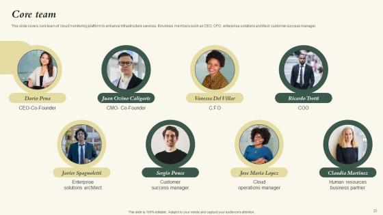 This slide covers core team of cloud monitoring platform to enhance infrastructure services. It involves members such as CEO, CFO, enterprise solutions architect, customer success manager. Do you have to make sure that everyone on your team knows about any specific topic I yes, then you should give Core Team Nubity Capital Funding Pitch Deck Professional Pdf a try. Our experts have put a lot of knowledge and effort into creating this impeccable Core Team Nubity Capital Funding Pitch Deck Professional Pdf. You can use this template for your upcoming presentations, as the slides are perfect to represent even the tiniest detail. You can download these templates from the Slidegeeks website and these are easy to edit. So grab these today. This slide covers core team of cloud monitoring platform to enhance infrastructure services. It involves members such as CEO, CFO, enterprise solutions architect, customer success manager.