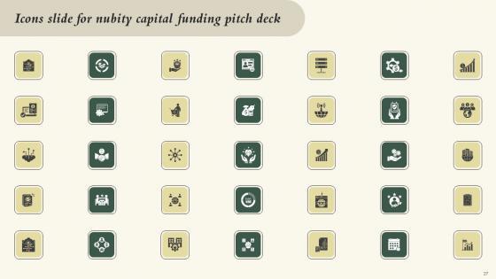Help your business to create an attention-grabbing presentation using our Icons Slide For Nubity Capital Funding Pitch Deck Microsoft Pdf set of slides. The slide contains innovative icons that can be flexibly edited. Choose this Icons Slide For Nubity Capital Funding Pitch Deck Microsoft Pdf template to create a satisfactory experience for your customers. Go ahead and click the download button. Our Icons Slide For Nubity Capital Funding Pitch Deck Microsoft Pdf are topically designed to provide an attractive backdrop to any subject. Use them to look like a presentation pro.