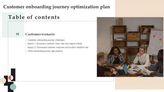 Slidegeeks is here to make your presentations a breeze with Customer Onboarding Journey Optimization Plan Table Of Contents Topics PDF With our easy to use and customizable templates, you can focus on delivering your ideas rather than worrying about formatting. With a variety of designs to choose from, you are sure to find one that suits your needs. And with animations and unique photos, illustrations, and fonts, you can make your presentation pop. So whether you are giving a sales pitch or presenting to the board, make sure to check out Slidegeeks first.