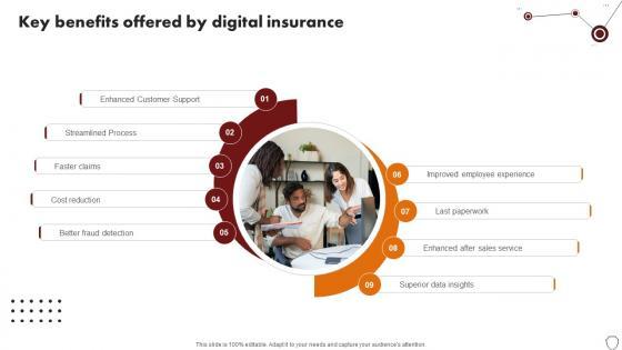 Find a pre-designed and impeccable Technology Trends In Online Insurance Key Benefits Offered By Digital Insurance. The templates can ace your presentation without additional effort. You can download these easy-to-edit presentation templates to make your presentation stand out from others. So, what are you waiting for Download the template from Slidegeeks today and give a unique touch to your presentation. Our Technology Trends In Online Insurance Key Benefits Offered By Digital Insurance are topically designed to provide an attractive backdrop to any subject. Use them to look like a presentation pro.