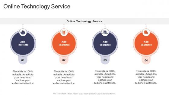 Presenting our innovatively designed set of slides titled Online Technology Service In Powerpoint And Google Slides Cpb. This completely editable PowerPoint graphic exhibits Online Technology Service that will help you convey the message impactfully. It can be accessed with Google Slides and is available in both standard screen and widescreen aspect ratios. Apart from this, you can download this well structured PowerPoint template design in different formats like PDF, JPG, and PNG. So, click the download button now to gain full access to this PPT design. Our Online Technology Service In Powerpoint And Google Slides Cpb are topically designed to provide an attractive backdrop to any subject. Use them to look like a presentation pro.