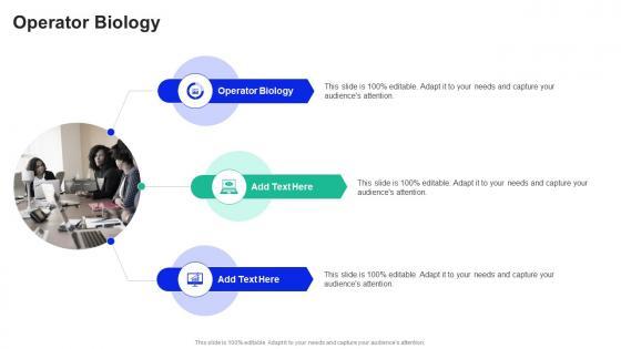 Introducing our well designed Operator Biology In Powerpoint And Google Slides Cpb. This PowerPoint design presents information on topics like Operator Biology. As it is predesigned it helps boost your confidence level. It also makes you a better presenter because of its high quality content and graphics. This PPT layout can be downloaded and used in different formats like PDF, PNG, and JPG. Not only this, it is available in both Standard Screen and Widescreen aspect ratios for your convenience. Therefore, click on the download button now to persuade and impress your audience. Our Operator Biology In Powerpoint And Google Slides Cpb are topically designed to provide an attractive backdrop to any subject. Use them to look like a presentation pro.