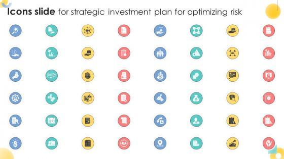 Help your business to create an attention-grabbing presentation using our Icons Slide For Strategic Investment Plan For Optimizing Risk SS V set of slides. The slide contains innovative icons that can be flexibly edited. Choose this Icons Slide For Strategic Investment Plan For Optimizing Risk SS V template to create a satisfactory experience for your customers. Go ahead and click the download button. Our Icons Slide For Strategic Investment Plan For Optimizing Risk SS V are topically designed to provide an attractive backdrop to any subject. Use them to look like a presentation pro.