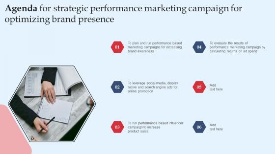 Find a pre-designed and impeccable Agenda For Strategic Performance Marketing Campaign For Optimizing Brand Presence Structure Pdf. The templates can ace your presentation without additional effort. You can download these easy-to-edit presentation templates to make your presentation stand out from others. So, what are you waiting for Download the template from Slidegeeks today and give a unique touch to your presentation. Our Agenda For Strategic Performance Marketing Campaign For Optimizing Brand Presence Structure Pdf are topically designed to provide an attractive backdrop to any subject. Use them to look like a presentation pro.