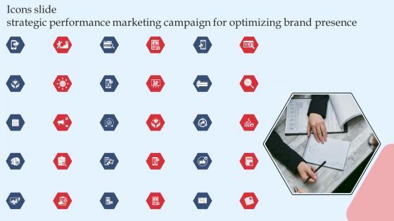 Presenting our innovatively structured Icons Slide Strategic Performance Marketing Campaign For Optimizing Brand Presence Background Pdf set of slides. The slides contain a hundred percent editable icons. You can replace these icons without any inconvenience. Therefore, pick this set of slides and create a striking presentation. Our Icons Slide Strategic Performance Marketing Campaign For Optimizing Brand Presence Background Pdf are topically designed to provide an attractive backdrop to any subject. Use them to look like a presentation pro.