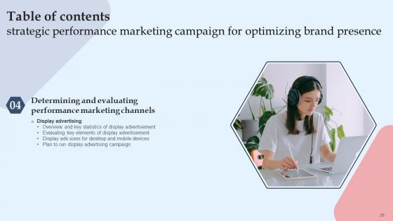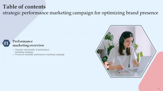 Explore a selection of the finest Strategic Performance Marketing Campaign For Optimizing Brand Table Of Contents Mockup Pdf here. With a plethora of professionally designed and pre-made slide templates, you can quickly and easily find the right one for your upcoming presentation. You can use our Strategic Performance Marketing Campaign For Optimizing Brand Table Of Contents Mockup Pdf to effectively convey your message to a wider audience. Slidegeeks has done a lot of research before preparing these presentation templates. The content can be personalized and the slides are highly editable. Grab templates today from Slidegeeks. Our Strategic Performance Marketing Campaign For Optimizing Brand Table Of Contents Mockup Pdf are topically designed to provide an attractive backdrop to any subject. Use them to look like a presentation pro.