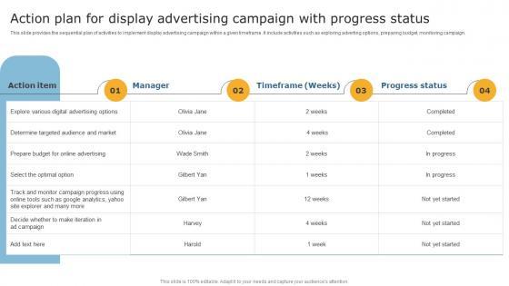 This slide provides the sequential plan of activities to implement display advertising campaign within a given timeframe. It include activities such as exploring adverting options, preparing budget, monitoring campaign. Get a simple yet stunning designed Techniques To Optimize Business Performance Action Plan For Display Advertising Campaign Microsoft Pdf. It is the best one to establish the tone in your meetings. It is an excellent way to make your presentations highly effective. So, download this PPT today from Slidegeeks and see the positive impacts. Our easy-to-edit Techniques To Optimize Business Performance Action Plan For Display Advertising Campaign Microsoft Pdf can be your go-to option for all upcoming conferences and meetings. So, what are you waiting for Grab this template today. This slide provides the sequential plan of activities to implement display advertising campaign within a given timeframe. It include activities such as exploring adverting options, preparing budget, monitoring campaign.