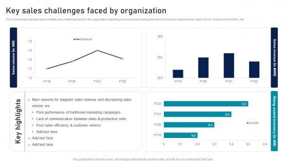 This slide provides glimpse about multiple sales challenges faced by the organization regarding current and past sales performance. It includes sales revenue, sales volume, rising unsold inventory, etc. Welcome to our selection of the Key Sales Challenges Faced Effective Sales Strategy To Enhance Customer Retention Themes Pdf. These are designed to help you showcase your creativity and bring your sphere to life. Planning and Innovation are essential for any business that is just starting out. This collection contains the designs that you need for your everyday presentations. All of our PowerPoints are 100 percent editable, so you can customize them to suit your needs. This multi purpose template can be used in various situations. Grab these presentation templates today This slide provides glimpse about multiple sales challenges faced by the organization regarding current and past sales performance. It includes sales revenue, sales volume, rising unsold inventory, etc.