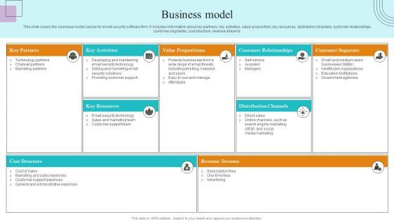This slide covers the business model canvas for email security software firm. It includes information about key partners, key activities, value proposition, key resources, distribution channels, customer relationships, customer segments, cost structure, revenue streams. Do you have to make sure that everyone on your team knows about any specific topic I yes, then you should give Business Model Paubox Capital Funding Pitch Deck Download Pdf a try. Our experts have put a lot of knowledge and effort into creating this impeccable Business Model Paubox Capital Funding Pitch Deck Download Pdf. You can use this template for your upcoming presentations, as the slides are perfect to represent even the tiniest detail. You can download these templates from the Slidegeeks website and these are easy to edit. So grab these today This slide covers the business model canvas for email security software firm. It includes information about key partners, key activities, value proposition, key resources, distribution channels, customer relationships, customer segments, cost structure, revenue streams.