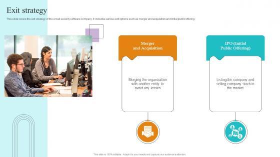 This slide covers the exit strategy of the email security software company. It includes various exit options such as merger and acquisition and initial public offering. Find highly impressive Exit Strategy Paubox Capital Funding Pitch Deck Clipart Pdf on Slidegeeks to deliver a meaningful presentation. You can save an ample amount of time using these presentation templates. No need to worry to prepare everything from scratch because Slidegeeks experts have already done a huge research and work for you. You need to download Exit Strategy Paubox Capital Funding Pitch Deck Clipart Pdf for your upcoming presentation. All the presentation templates are 100 percent editable and you can change the color and personalize the content accordingly. Download now This slide covers the exit strategy of the email security software company. It includes various exit options such as merger and acquisition and initial public offering.
