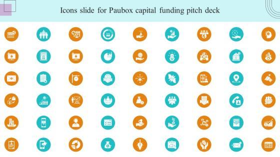 Introducing our well designed Icons Slide For Paubox Capital Funding Pitch Deck Graphics Pdf set of slides. The slide displays editable icons to enhance your visual presentation. The icons can be edited easily. So customize according to your business to achieve a creative edge. Download and share it with your audience. Our Icons Slide For Paubox Capital Funding Pitch Deck Graphics Pdf are topically designed to provide an attractive backdrop to any subject. Use them to look like a presentation pro.