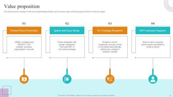 This slide covers the companys USP such as patient data protection, quick and easy setup, no training required, and 24 7 customer support. Slidegeeks has constructed Value Proposition Paubox Capital Funding Pitch Deck Pictures Pdf after conducting extensive research and examination. These presentation templates are constantly being generated and modified based on user preferences and critiques from editors. Here, you will find the most attractive templates for a range of purposes while taking into account ratings and remarks from users regarding the content. This is an excellent jumping off point to explore our content and will give new users an insight into our top notch PowerPoint Templates. This slide covers the companys USP such as patient data protection, quick and easy setup, no training required, and 24 7 customer support.