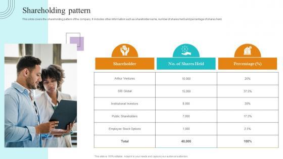 This slide covers the shareholding pattern of the company. It includes other information such as shareholder name, number of shares held and percentage of shares held. Are you searching for a Shareholding Pattern Paubox Capital Funding Pitch Deck Introduction Pdf that is uncluttered, straightforward, and original Its easy to edit, and you can change the colors to suit your personal or business branding. For a presentation that expresses how much effort you have put in, this template is ideal With all of its features, including tables, diagrams, statistics, and lists, its perfect for a business plan presentation. Make your ideas more appealing with these professional slides. Download Shareholding Pattern Paubox Capital Funding Pitch Deck Introduction Pdf from Slidegeeks today. This slide covers the shareholding pattern of the company. It includes other information such as shareholder name, number of shares held and percentage of shares held.