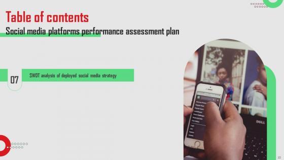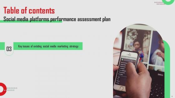 Crafting an eye-catching presentation has never been more straightforward. Let your presentation shine with this tasteful yet straightforward Table Of Contents Social Media Platforms Performance Assessment Plan Rules Pdf template. It offers a minimalistic and classy look that is great for making a statement. The colors have been employed intelligently to add a bit of playfulness while still remaining professional. Construct the ideal Table Of Contents Social Media Platforms Performance Assessment Plan Rules Pdf that effortlessly grabs the attention of your audience. Begin now and be certain to wow your customers. Our Table Of Contents Social Media Platforms Performance Assessment Plan Rules Pdf are topically designed to provide an attractive backdrop to any subject. Use them to look like a presentation pro.