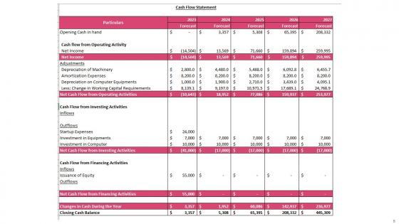 The slides highlight the company cash flow statement to provide a detailed picture of what happened to a business cash during a specified period. It represents net cash flow from operating, investing, and financing activities from the historical year 2023 till the forecasted year 2027. Get a simple yet stunning designed Perfume Manufacturing Business Plan Consolidated Statements Of Cash Flows For Perfume Start Up BP SS V. It is the best one to establish the tone in your meetings. It is an excellent way to make your presentations highly effective. So, download this PPT today from Slidegeeks and see the positive impacts. Our easy-to-edit Perfume Manufacturing Business Plan Consolidated Statements Of Cash Flows For Perfume Start Up BP SS V can be your go-to option for all upcoming conferences and meetings. So, what are you waiting for Grab this template today. The slides highlight the company cash flow statement to provide a detailed picture of what happened to a business cash during a specified period. It represents net cash flow from operating, investing, and financing activities from the historical year 2023 till the forecasted year 2027.