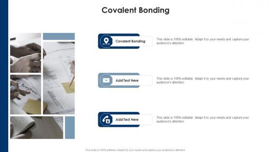 Introducing our well designed Covalent Bonding In Powerpoint And Google Slides Cpb. This PowerPoint design presents information on topics like Covalent Bonding. As it is predesigned it helps boost your confidence level. It also makes you a better presenter because of its high quality content and graphics. This PPT layout can be downloaded and used in different formats like PDF, PNG, and JPG. Not only this, it is available in both Standard Screen and Widescreen aspect ratios for your convenience. Therefore, click on the download button now to persuade and impress your audience. Our Covalent Bonding In Powerpoint And Google Slides Cpb are topically designed to provide an attractive backdrop to any subject. Use them to look like a presentation pro.