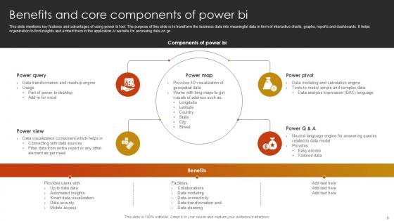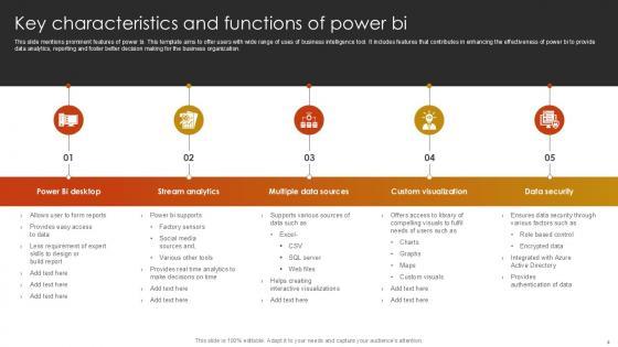 This Power BI Tool Powerpoint Ppt Template Bundles is a primer on how to capitalize on business opportunities through planning, innovation, and market intelligence. The content-ready format of the complete deck will make your job as a decision-maker a lot easier. Use this ready-made PowerPoint Template to help you outline an extensive and legible plan to capture markets and grow your company on the right path, at an exponential pace. What is even more amazing is that this presentation is completely editable and 100 percent customizable. This Data Visualization, Project Report, Business Intelligence, Data Model, Machine Learning-slide complete deck helps you impress a roomful of people with your expertise in business and even presentation. Craft such a professional and appealing presentation for that amazing recall value. Download now. Introducing the game-changing Power BI solutions are the best solution for comprehensive data analysis and intelligent business intelligence. Power BI allows you to realize the full potential of your data by transforming it into relevant visualizations and interactive reports. Connect to numerous data sources seamlessly, combine them, and receive useful insights using Power BI analysis. Create attractive Power BI dashboards that provide a holistic perspective of your organizations performance, allowing you to confidently make educated decisions. Real-time data exploration, powerful analytics, and collaboration features may all help your team succeed. Power BI is your reliable partner for harnessing the power of data to drive growth and success. Power BI represents the future of data-driven decision-making.
