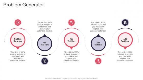 Introducing our well designed Problem Generator In Powerpoint And Google Slides Cpb. This PowerPoint design presents information on topics like Problem Generator. As it is predesigned it helps boost your confidence level. It also makes you a better presenter because of its high-quality content and graphics. This PPT layout can be downloaded and used in different formats like PDF, PNG, and JPG. Not only this, it is available in both Standard Screen and Widescreen aspect ratios for your convenience. Therefore, click on the download button now to persuade and impress your audience. Our Problem Generator In Powerpoint And Google Slides Cpb are topically designed to provide an attractive backdrop to any subject. Use them to look like a presentation pro.
