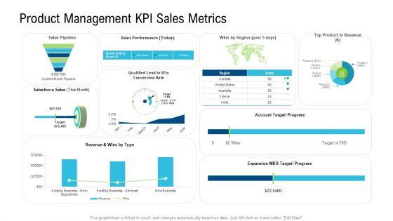 Deliver and pitch your topic in the best possible manner with this product pricing strategies product management kpi sales metrics ppt pictures summary pdf. Use them to share invaluable insights on sales, performance, target, revenue and impress your audience. This template can be altered and modified as per your expectations. So, grab it now.
