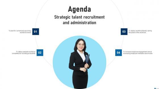 Find a pre-designed and impeccable Agenda Strategic Talent Recruitment And Administration Brochure Pdf. The templates can ace your presentation without additional effort. You can download these easy-to-edit presentation templates to make your presentation stand out from others. So, what are you waiting for Download the template from Slidegeeks today and give a unique touch to your presentation. Our Agenda Strategic Talent Recruitment And Administration Brochure Pdf are topically designed to provide an attractive backdrop to any subject. Use them to look like a presentation pro.