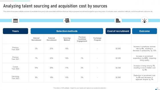 This fifty four slide Strategic Talent Recruitment And Administration Ppt PowerPoint Presentation Complete Deck With Slides is your content ready tool to impress the stakeholders with your business planning and its manner of execution. Showcase your ideas and how you plan to make them real in detail with this PPT Template Bundle. The slides have the conceptual bandwidth to present the crucial aspects of your plan, such as funding, marketing, resource allocation, timeline, roadmap, and more. When you present your plans with this PPT Layout, the stakeholders are sure to come on board because you will be able to present a succinct, thought-out, winning project. Download this Complete Deck now to take control into your hands. The 100 percent customizable offer is just too good to be resisted. Our Strategic Talent Recruitment And Administration Ppt PowerPoint Presentation Complete Deck With Slides are topically designed to provide an attractive backdrop to any subject. Use them to look like a presentation pro.