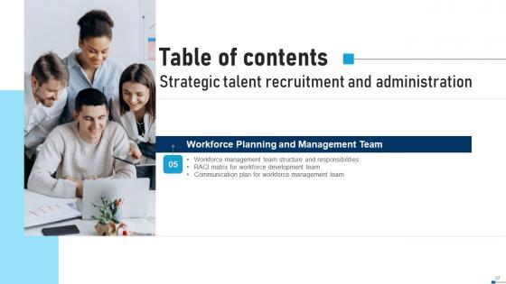 Welcome to our selection of the Strategic Talent Recruitment And Administration Table Of Contents Diagrams Pdf. These are designed to help you showcase your creativity and bring your sphere to life. Planning and Innovation are essential for any business that is just starting out. This collection contains the designs that you need for your everyday presentations. All of our PowerPoints are 100 percent editable, so you can customize them to suit your needs. This multi-purpose template can be used in various situations. Grab these presentation templates today Our Strategic Talent Recruitment And Administration Table Of Contents Diagrams Pdf are topically designed to provide an attractive backdrop to any subject. Use them to look like a presentation pro.