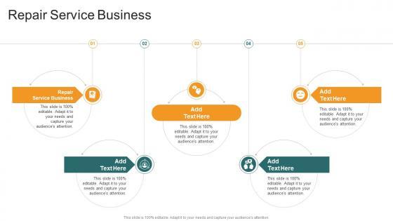 Introducing our well designed Repair Service Business In Powerpoint And Google Slides Cpb. This PowerPoint design presents information on topics like Repair Service Business. As it is predesigned it helps boost your confidence level. It also makes you a better presenter because of its high quality content and graphics. This PPT layout can be downloaded and used in different formats like PDF, PNG, and JPG. Not only this, it is available in both Standard Screen and Widescreen aspect ratios for your convenience. Therefore, click on the download button now to persuade and impress your audience. Our Repair Service Business In Powerpoint And Google Slides Cpb are topically designed to provide an attractive backdrop to any subject. Use them to look like a presentation pro.