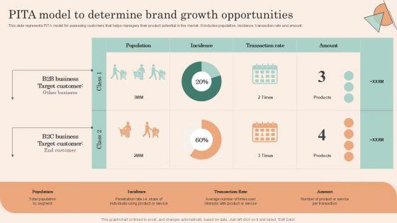 This slide represents PITA model for assessing customers that helps managers their product potential in the market. It includes population, incidence, transaction rate and amount. Do you have an important presentation coming up Are you looking for something that will make your presentation stand out from the rest Look no further than Retail Promotion Strategies To Elevate Shopper PITA Model To Determine Brand Growth Formats PDF. With our professional designs, you can trust that your presentation will pop and make delivering it a smooth process. And with Slidegeeks, you can trust that your presentation will be unique and memorable. So why wait Grab Retail Promotion Strategies To Elevate Shopper PITA Model To Determine Brand Growth Formats PDF today and make your presentation stand out from the rest.