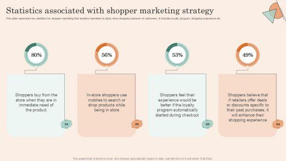 This slide represents key statistics for shopper marketing that enables marketers to study store shopping behavior of customers. It includes loyalty program, shopping experience etc. Find highly impressive Retail Promotion Strategies To Elevate Shopper Statistics Associated With Shopper Marketing Template PDF on Slidegeeks to deliver a meaningful presentation. You can save an ample amount of time using these presentation templates. No need to worry to prepare everything from scratch because Slidegeeks experts have already done a huge research and work for you. You need to download Retail Promotion Strategies To Elevate Shopper Statistics Associated With Shopper Marketing Template PDF for your upcoming presentation. All the presentation templates are 100 percent editable and you can change the color and personalize the content accordingly. Download now.