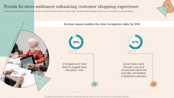 This slide represents statistics related to the in-store ambiance that helps retail stores improve sales. It includes details regarding in-store music and its impact on customer behavior. If your project calls for a presentation, then Slidegeeks is your go to partner because we have professionally designed, easy to edit templates that are perfect for any presentation. After downloading, you can easily edit Retail Promotion Strategies To Elevate Shopper Trends In Store Ambiance Enhancing Customer Infographics PDF and make the changes accordingly. You can rearrange slides or fill them with different images. Check out all the handy templates