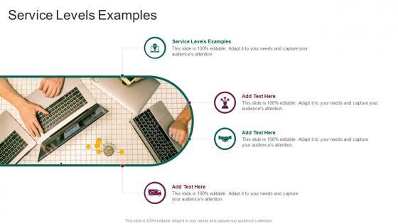 Presenting our innovatively designed set of slides titled Service Levels Examples In Powerpoint And Google Slides Cpb This completely editable PowerPoint graphic exhibits Service Levels Examples that will help you convey the message impactfully. It can be accessed with Google Slides and is available in both standard screen and widescreen aspect ratios. Apart from this, you can download this well structured PowerPoint template design in different formats like PDF, JPG, and PNG. So, click the download button now to gain full access to this PPT design. Our Service Levels Examples In Powerpoint And Google Slides Cpb are topically designed to provide an attractive backdrop to any subject. Use them to look like a presentation pro.