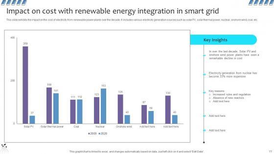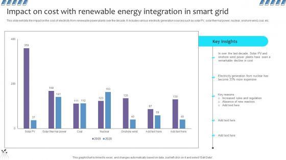 This slide exhibits the impact on the cost of electricity from renewable power plants over the decade. It includes various electricity generation sources such as solar PV, solar thermal power, nuclear, onshore wind, coal, etc. This modern and well-arranged Empowering The Future Impact On Cost With Renewable Energy Integration In Smart IoT SS V provides lots of creative possibilities. It is very simple to customize and edit with the Powerpoint Software. Just drag and drop your pictures into the shapes. All facets of this template can be edited with Powerpoint, no extra software is necessary. Add your own material, put your images in the places assigned for them, adjust the colors, and then you can show your slides to the world, with an animated slide included. This slide exhibits the impact on the cost of electricity from renewable power plants over the decade. It includes various electricity generation sources such as solar PV, solar thermal power, nuclear, onshore wind, coal, etc.