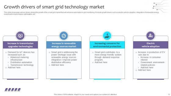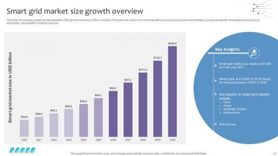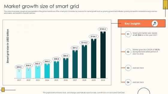 This slide showcases a graphical representation of the global market size of the smart grid. It Includes key reasons for market growth such as growing government-initiated, growing demand for renewable energy sources automation, and adoption of electric vehicles. Take your projects to the next level with our ultimate collection of Market Growth Size Of Smart Grid Internet Of Things Solutions To Enhance Energy IoT SS V. Slidegeeks has designed a range of layouts that are perfect for representing task or activity duration, keeping track of all your deadlines at a glance. Tailor these designs to your exact needs and give them a truly corporate look with your own brand colors they will make your projects stand out from the rest This slide showcases a graphical representation of the global market size of the smart grid. It Includes key reasons for market growth such as growing government-initiated, growing demand for renewable energy sources automation, and adoption of electric vehicles.