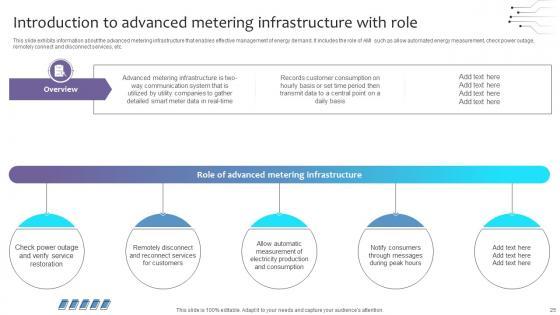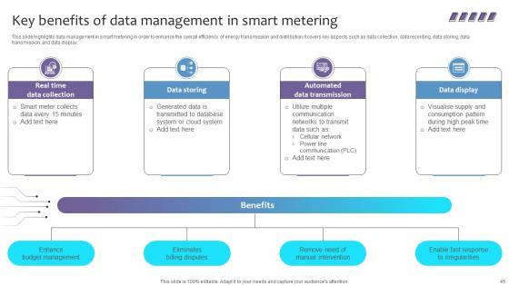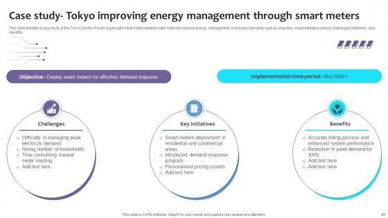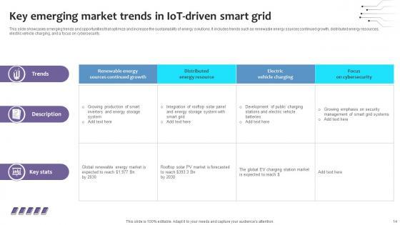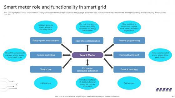 This Empowering The Future Of Energy With IoT Application In Smart Grid IoT CD V is a primer on how to capitalize on business opportunities through planning, innovation, and market intelligence. The content-ready format of the complete deck will make your job as a decision-maker a lot easier. Use this ready-made PowerPoint Template to help you outline an extensive and legible plan to capture markets and grow your company on the right path, at an exponential pace. What is even more amazing is that this presentation is completely editable and 100 percent customizable. This ninty four slide complete deck helps you impress a roomful of people with your expertise in business and even presentation. Craft such a professional and appealing presentation for that amazing recall value. Download now. Our Empowering The Future Of Energy With IoT Application In Smart Grid IoT CD V are topically designed to provide an attractive backdrop to any subject. Use them to look like a presentation pro.
