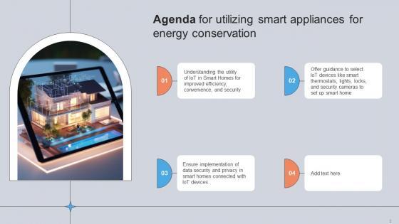 Find a pre-designed and impeccable Agenda For Utilizing Smart Appliances For Energy Conservation IoT SS V. The templates can ace your presentation without additional effort. You can download these easy-to-edit presentation templates to make your presentation stand out from others. So, what are you waiting for Download the template from Slidegeeks today and give a unique touch to your presentation. Our Agenda For Utilizing Smart Appliances For Energy Conservation IoT SS V are topically designed to provide an attractive backdrop to any subject. Use them to look like a presentation pro.