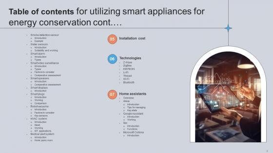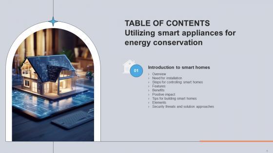 Get a simple yet stunning designed Table Of Contents Utilizing Smart Appliances For Energy Conservation IoT SS V. It is the best one to establish the tone in your meetings. It is an excellent way to make your presentations highly effective. So, download this PPT today from Slidegeeks and see the positive impacts. Our easy-to-edit Table Of Contents Utilizing Smart Appliances For Energy Conservation IoT SS V can be your go-to option for all upcoming conferences and meetings. So, what are you waiting for Grab this template today. Our Table Of Contents Utilizing Smart Appliances For Energy Conservation IoT SS V are topically designed to provide an attractive backdrop to any subject. Use them to look like a presentation pro.