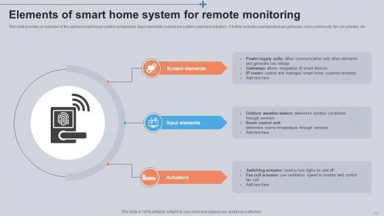This slide exhibits an overview of IoT based energy management in smart home to enhance convenience and control in order to make energy decisions. It includes key benefits such as costs savings, reduction in energy consumption, and remote control. Make sure to capture your audiences attention in your business displays with our gratis customizable IoT Based Energy Management Smart Internet Of Things Solutions To Enhance Energy IoT SS V. These are great for business strategies, office conferences, capital raising or task suggestions. If you desire to acquire more customers for your tech business and ensure they stay satisfied, create your own sales presentation with these plain slides. This slide exhibits an overview of IoT based energy management in smart home to enhance convenience and control in order to make energy decisions. It includes key benefits such as costs savings, reduction in energy consumption, and remote control.