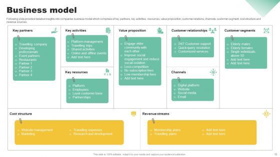 Following slide provided detailed insights into companies business model which comprises of key partners, key activities, resources, value proposition, customer relations, channels, customer segment, cost structure and revenue sources. The Business Model Social Community Management Solution Funding Pitch Presentation Icons Pdf is a compilation of the most recent design trends as a series of slides. It is suitable for any subject or industry presentation, containing attractive visuals and photo spots for businesses to clearly express their messages. This template contains a variety of slides for the user to input data, such as structures to contrast two elements, bullet points, and slides for written information. Slidegeeks is prepared to create an impression. Following slide provided detailed insights into companies business model which comprises of key partners, key activities, resources, value proposition, customer relations, channels, customer segment, cost structure and revenue sources.