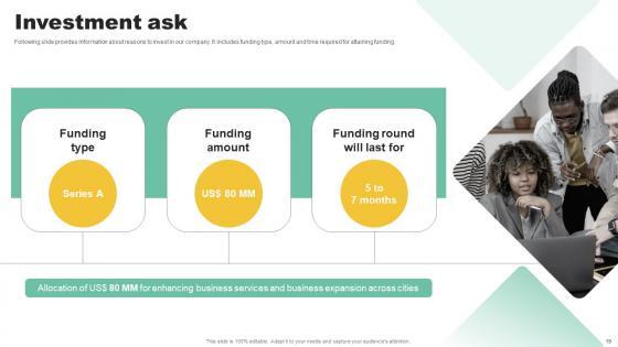 Following slide provides information about reasons to invest in our company. It includes funding type, amount and time required for attaining funding. Create an editable Investment Ask Social Community Management Solution Funding Pitch Presentation Themes Pdf that communicates your idea and engages your audience. Whether you are presenting a business or an educational presentation, pre designed presentation templates help save time. Investment Ask Social Community Management Solution Funding Pitch Presentation Themes Pdf is highly customizable and very easy to edit, covering many different styles from creative to business presentations. Slidegeeks has creative team members who have crafted amazing templates. So, go and get them without any delay. Following slide provides information about reasons to invest in our company. It includes funding type, amount and time required for attaining funding.